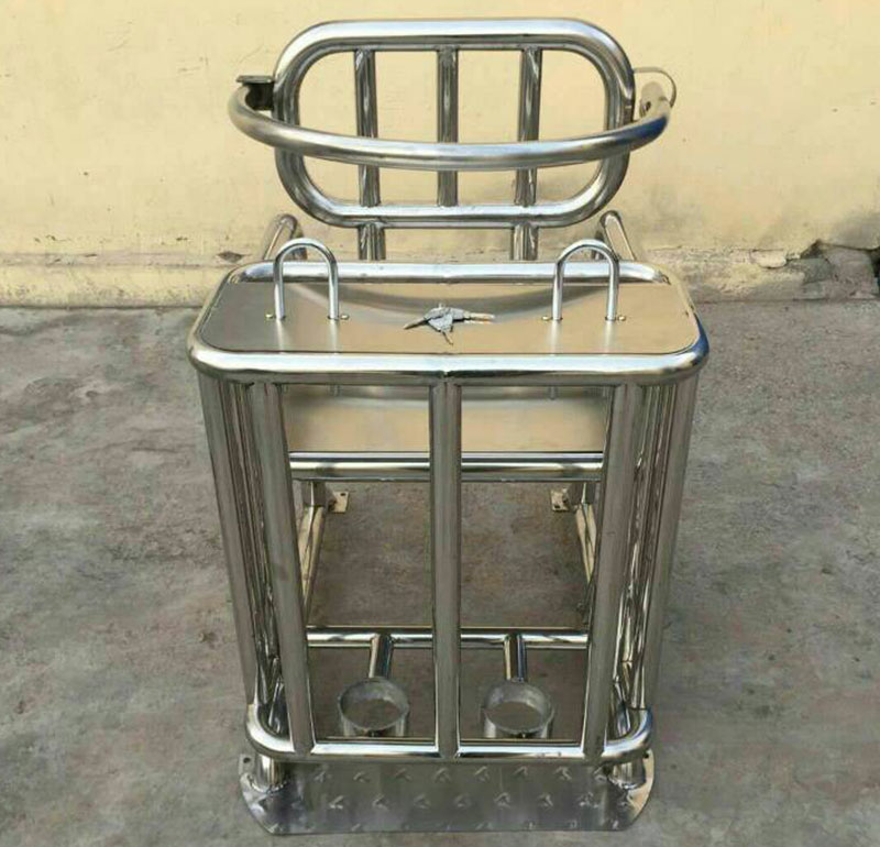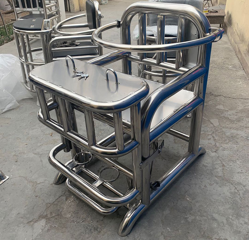 首先是方型的審訊椅,這款方型的審訊椅采用的是不銹鋼材質的,優(yōu)點是不容易生銹,而且很牢固。